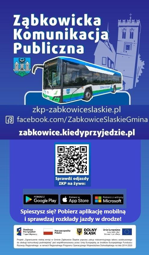 Zachęcamy również do zainstalowania aplikacji „KiedyPrzyjedzie” i strony zabkowice.kiedyprzyjedzie.pl