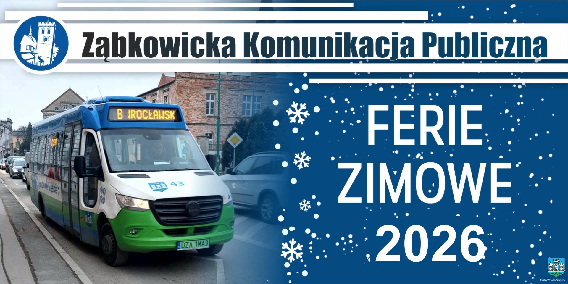 Szanowni mieszkańcy, w trakcie ferii zimowych czyli od 2 do 13 lutego 2026 r. będzie obowiązywał aktualny rozkład jazdy Ząbkowickiej Komunikacji Publicznej czyli taki jak dla dni roboczych, z wyjątkiem linii S2 i S4, kursujących wyłącznie w dni nauki szkolnej.